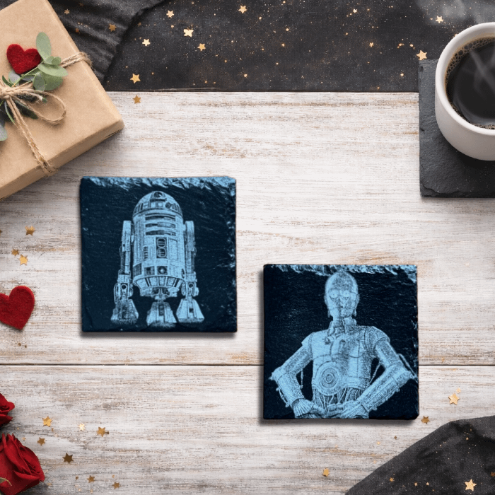 Set the stage for memorable Star Wars-themed gatherings, movie nights, or simply indulge in your daily cup of coffee with our exquisite Star Wars Laser Engraved Slate Coasters. Order now and bring the Force into your home!